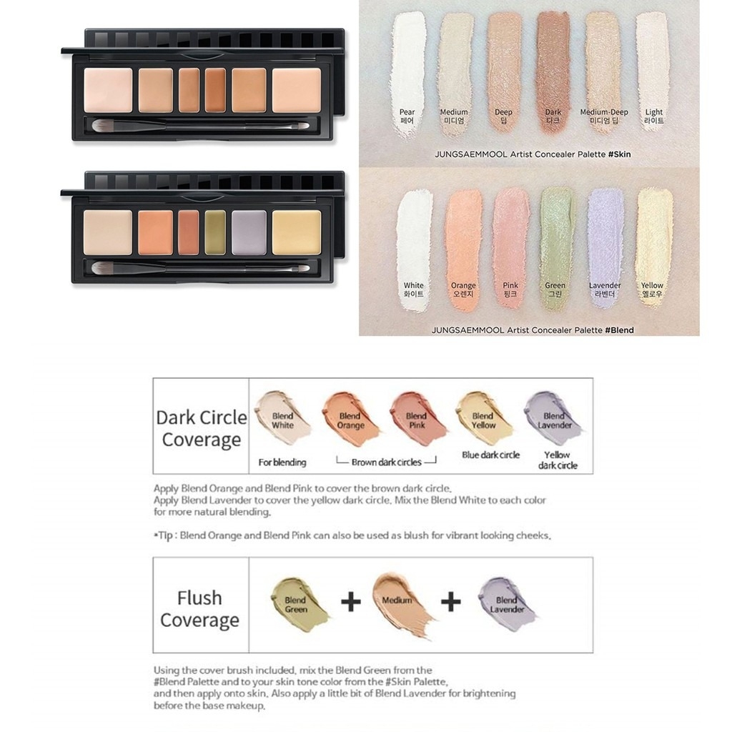 Jung Saem Mool là 1 trong những chuyên gia trang điểm nổi tiếng bậc nhất ở Hàn Quốc. Bảng che khuyết điểm và triệt sắc cô nghiên cứu sản xuất ra rất phù hợp với làn da Châu Á.Palette được thiết kế xịn xò với 6 ô, mỗi ô – mỗi màu sắc lại có những công dụng chuyên biệt.