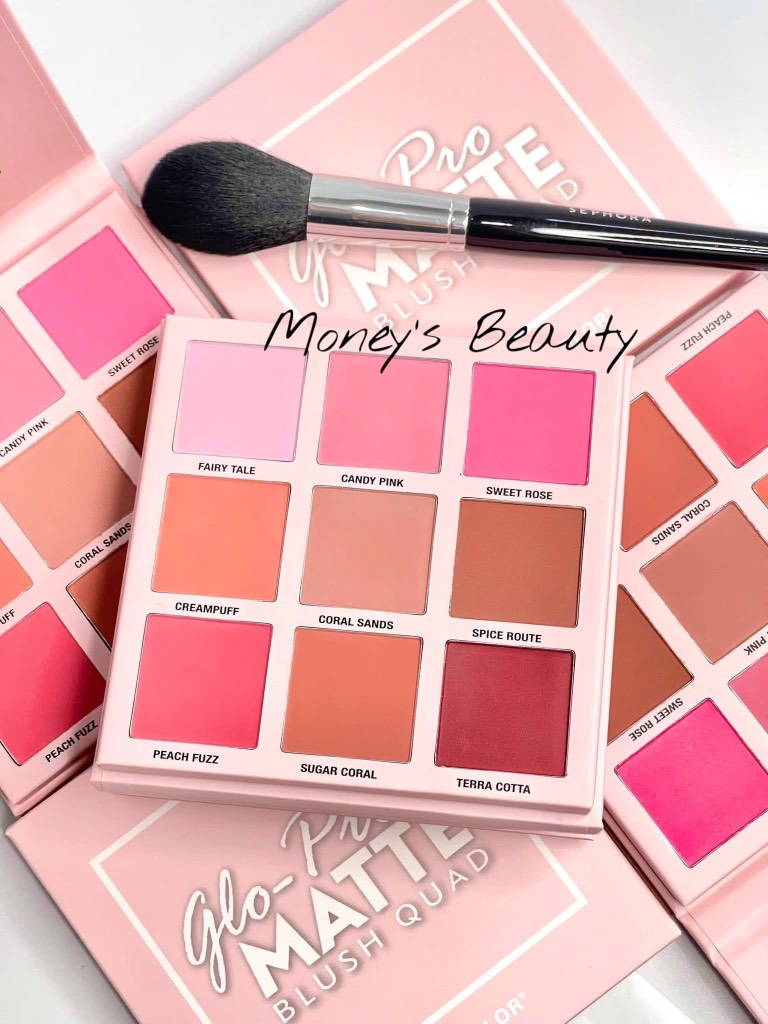 Bảng má gồm 9 ô màu pastel nhẹ nhàng từ hồng nhạt đến cam đào, tone nào cũng vô cùng mịn mướt như bơ mang đến cho nàng đôi má hồng trong trẻo.
