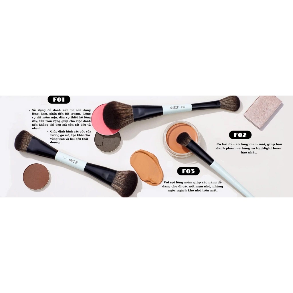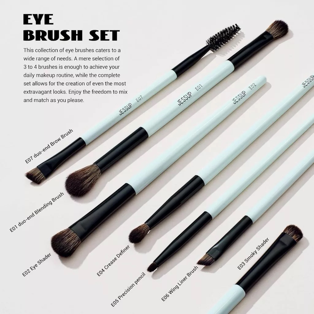 - E07 Duo-end Eyebrow Brush: Cọ kẻ mày 2 đầuBộ cọ Jessup14-in-10 Duo-End Brush Versatility Collection T500 với thiết kế gọn nhẹ, tone màu nhẹ nhàng, nhã nhặn. Phần thân cọ được làm từ chất liệu gỗ cao cấp, chắc chắn, cho thao tác tay thoải mái, dễ dàng khi đưa cọ lướt trên da