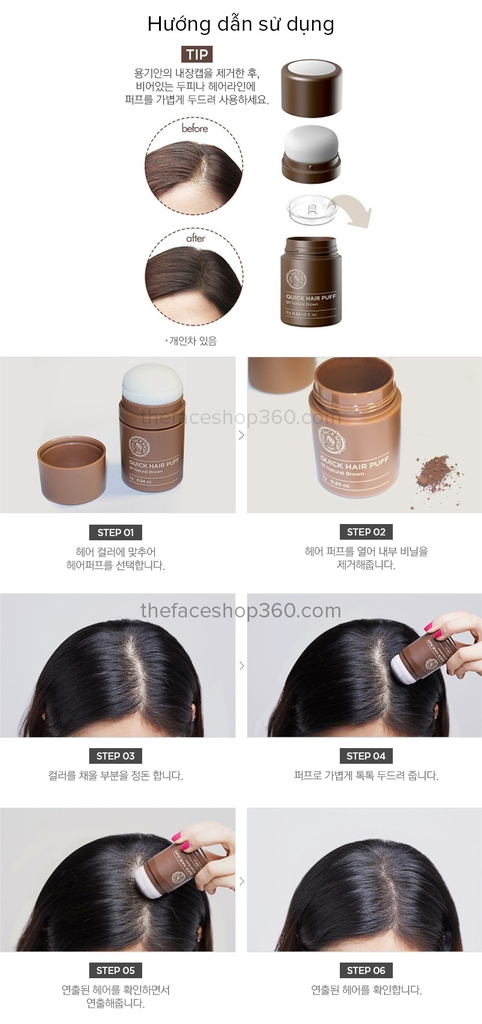Phấn Che Khuyết Điểm Tóc The Face Shop Quick Hair Puff Shadow sẽ giúp các bạn chẳng cần tốn quá nhiều công sức, chỉ đơn giản là lựa chọn màu phấn hợp với màu tóc của mình và dặm phấn lên tóc là đã có thể giấu nhẹm nhược điểm tóc thưa.