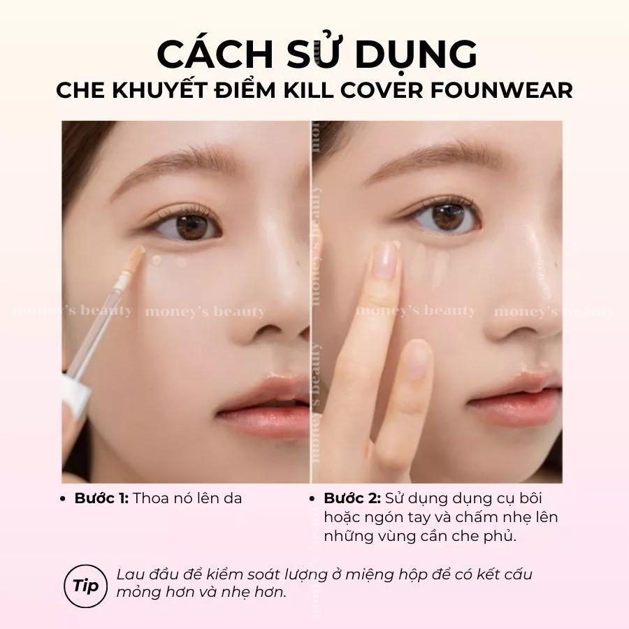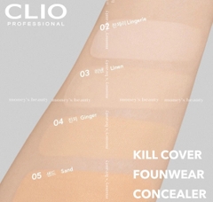 – Kem che khuyết điểm Clio Kill Cover Founwear Concealer có khả năng che tốt các khuyết điểm như sẹo, hình săm, thâm mụn, nám, tàn nhang, mẩn đỏ