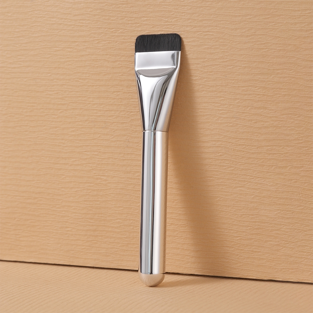 Cọ tán kem nền đầu dẹp, thân mạ chrome sáng bóng (dài 14cm)