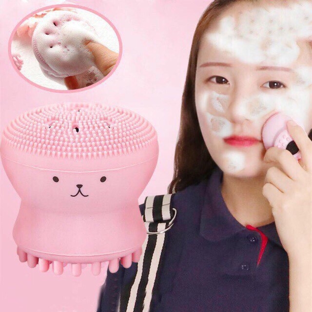 - Làm ướt mặt và sau đó cho một lượng sữa rửa mặt hay dầu tẩy trang lên cọ rửa mặt bạch tuộc, dùng tay bóp nhẹ tạo bọt sau đó xoa đều massage lên mặt, nhẹ nhàng thực hiện và rửa mặt sạch với nước.