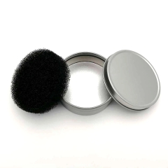 Chỉ cần đặt cọ lên miếng xốp màu đen bên trong và tạo thành một vòng tròn, bột sẽ từ từ được chuyển ra ngoài, và miếng xốp màu đen sẽ thấy bột, điều đó có nghĩa là phần bột còn lại trên cọ đã