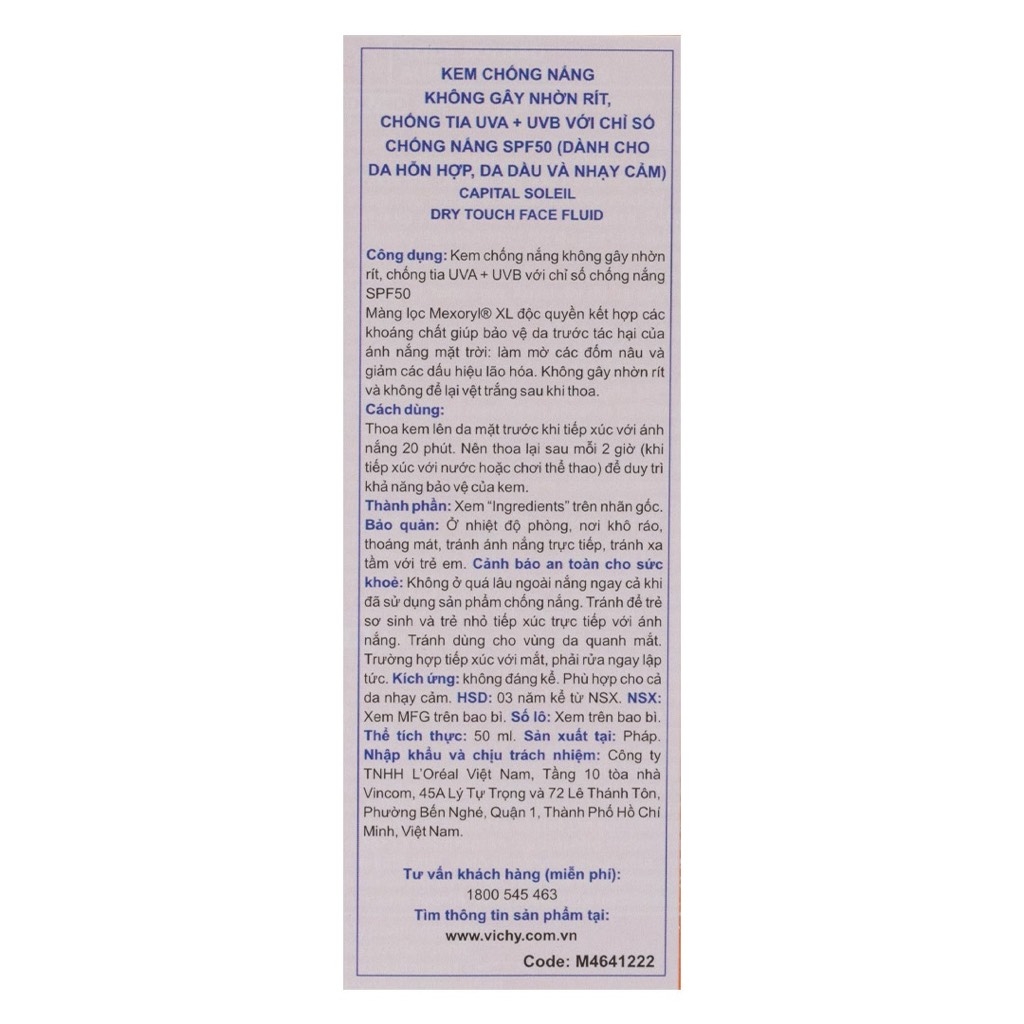 Kem Chống Nắng Vichy Ideal Soleil Dry Touch SPF 50Thoáng Nhẹ Không Bóng Dầu là dòng sản phẩm kem chống nắng vừa mới được cho ra mắt đến từ thương hiệu mỹ phẩm Vichy của Pháp. Đây là dòng kem chống nắng thuộc vào dòng dược mỹ phẩm, đây là sản phẩm được đánh giá khá cao nhờ sở hữu được bộ ba màng lọc bảo vệ da vượt trội, ngăn chặn được hoàn toàn sự tác động của tia UVA và UVB đến các tế bào da. Công thức dịu nhẹ, lành tính đối với mọi làn da, kể cả làn da nhạy cảm, giúp ngăn ngừa tình trạng sạm nám, ung thư da.