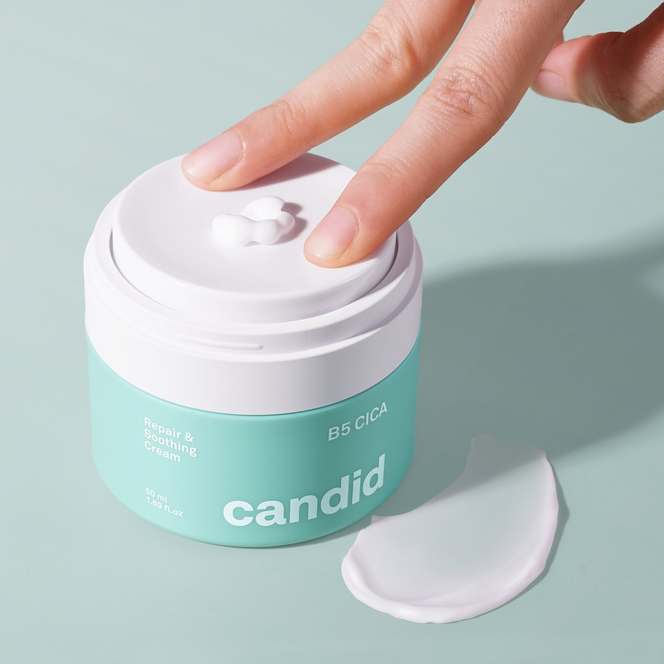 - Kem Dưỡng Candid B5 Cica Repair & Soothing Cream hỗ trợ phục hồi da sau mụn, peel và treatment, tái tạo làn da sau mụn, giảm sưng và hỗ trợ làm lành tổn thương nhỏ trên da. Ngoài ra, còn giúp da phục hồi nhanh hơn sau các liệu trình làm đẹp như peel da, laser, treatment retinol/BHA/AHA.