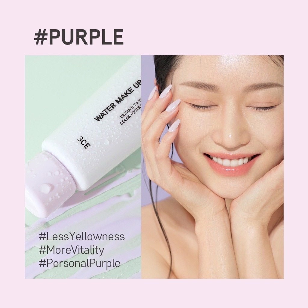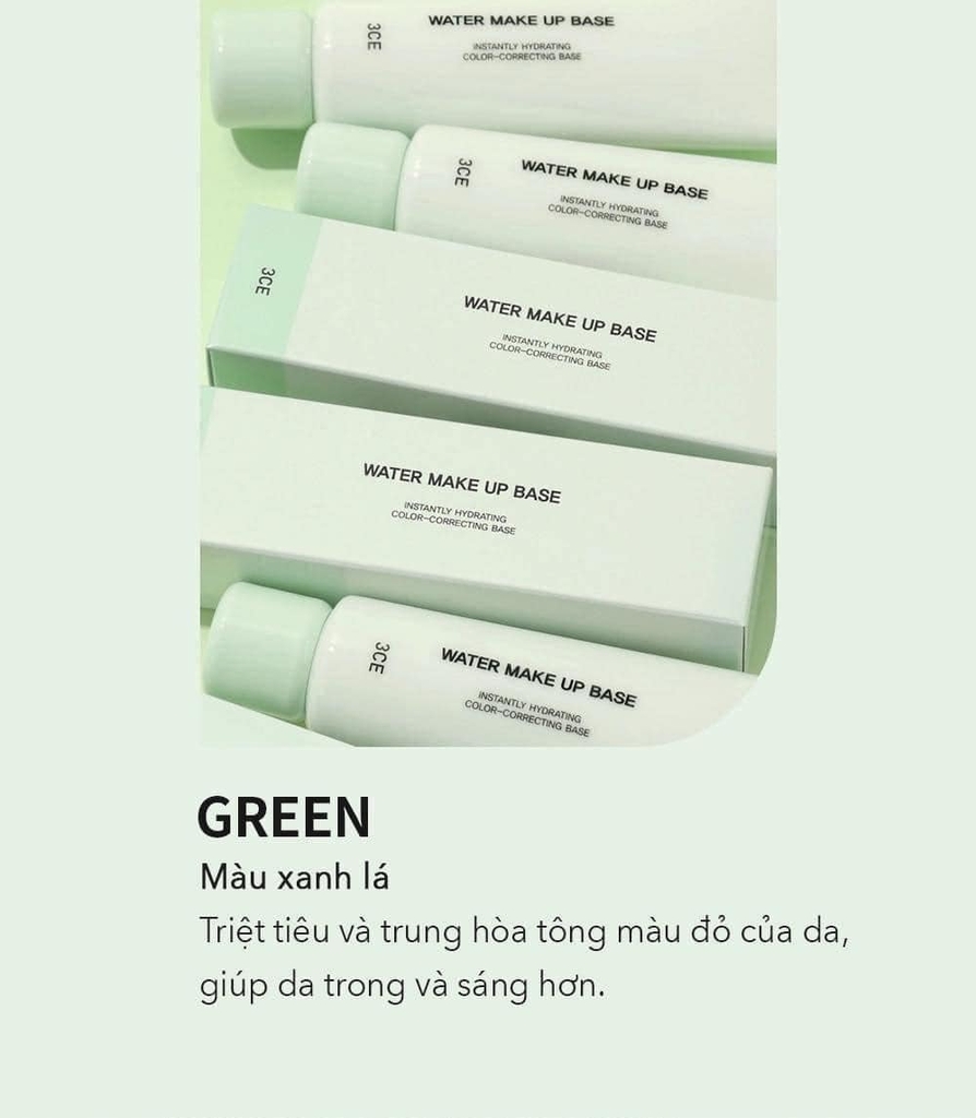 3CE Water Make Up Base với 3 dòng kem lót giúp chuẩn bị cho bạn 1 nền da hoàn hảo trước khi makeup. Những vấn đề sắc tố da chúng mình thường gặp sẽ ngay lập tức được xử lý.