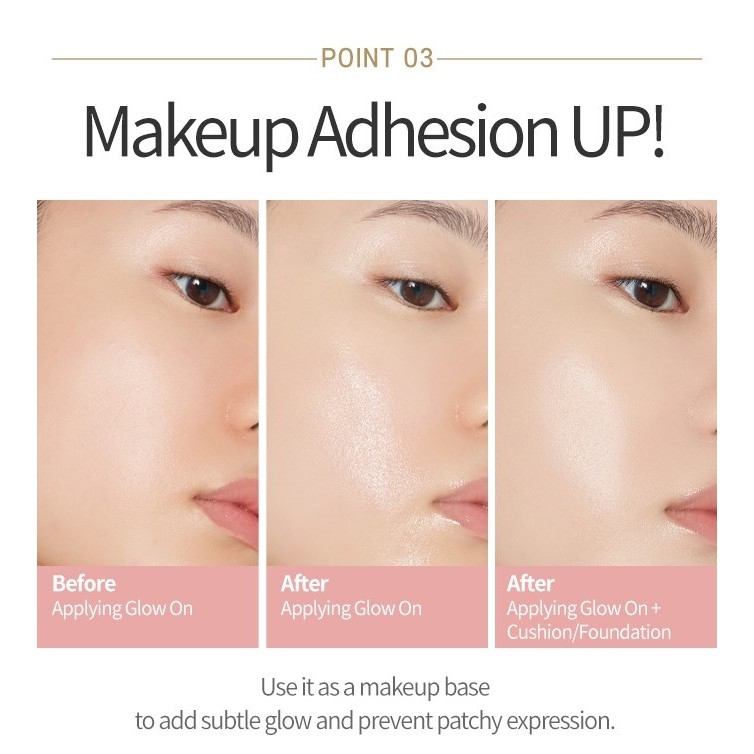 - Trước khi trang điểm mặt, thoa một lượng vừa đủ Kem lót Etude House Glow On lên da, sau đó dùng cọ tán lớp kem lót mỏng và đều.