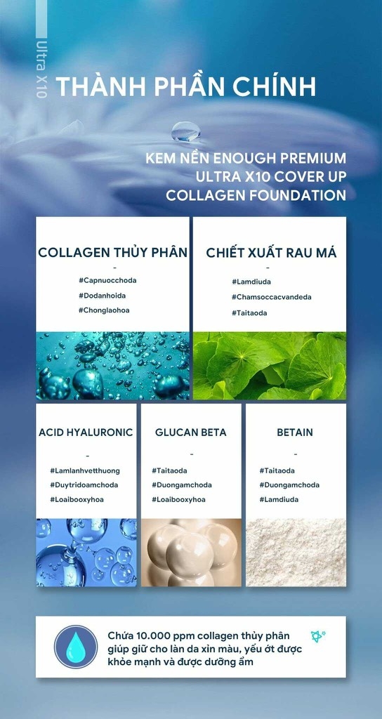 THÀNH PHẦN VÀ CÔNG DỤNG KEM NỀN ENOUGH PREMIUM ULTRA X10 COVER UP COLLAGEN FOUNDATION 100ML #21