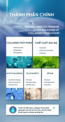 Thành phần Collagen thủy phân, Sodium Hyaluronate giúp cấp ẩm làn da, hạn chế tình trạng cakey hay mốc nền.