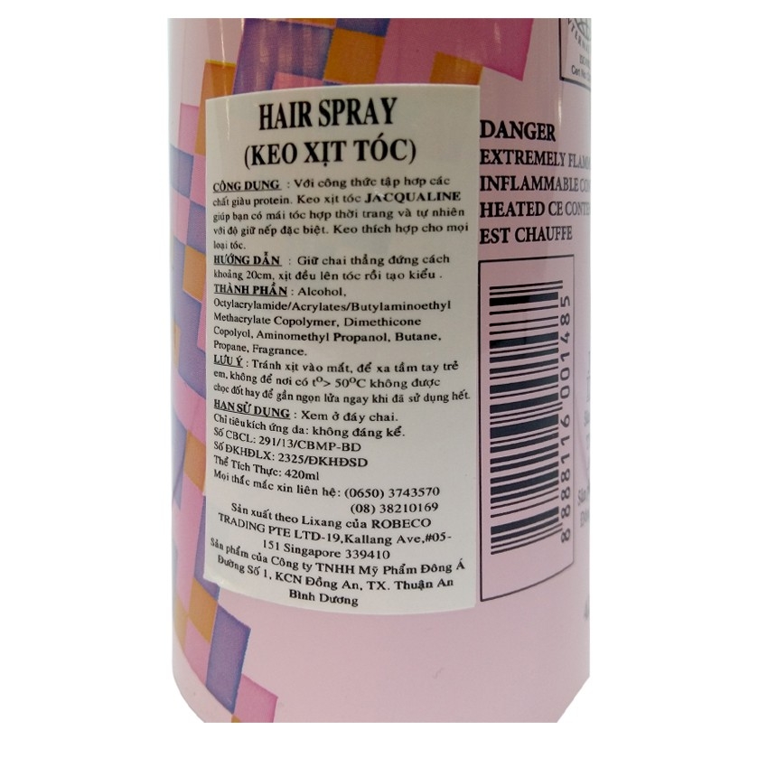 - Keo xịt tóc Hair Spray Extra Control Jacqualine 420ml giúp giữ nếp tóc dài lâu, giúp tạo lớp để bảo vệ mái tóc của bạn.
