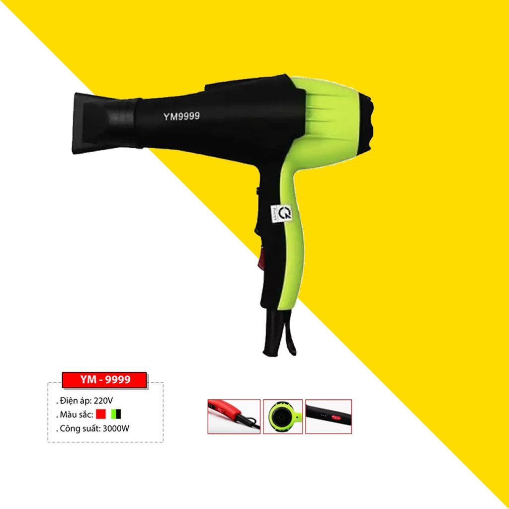 Với công suất 3000W Máy sấy tóc YM 9999 cực mạnh cho bạn dể dàng phủi tóc và sấy khô nhanh, máy có 2 công tắc: 1 công tắc có chức năng bật/tắt 2 chiều nóng/lạnh, 1 công tắc điều chỉnh tốc độc sấy để bạn điều chỉnh phù hợp nhất mỗi khi sấy tóc hay làm tóc. Máy sấy tóc YM 9999
