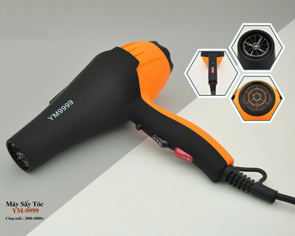 Máy sấy tóc YM 9999 với thiết kế độc đáo tập trung luồng gió mạnh không chỉ giúp bạn tiết kiệm thời gian mà còn tạo được nhiều kiểu tóc đẹp. đầu sấy tạo kiểu giúp tóc khô nhanh và tạo kiểu tóc dễ dàng.