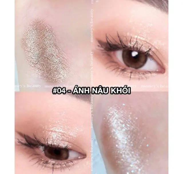 - Kết cấu nhũ mắt dạng bột kem nền mềm nhiều nhũ, dễ dàng tán đều trên bầu mắt cũng như tiệp vào da