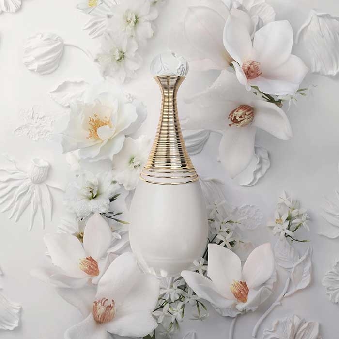 - Cuối cùng, thiết kế chai nước hoa J’adore được hình dung trong một phiên bản màu trắng như ngọc trai, với chất liệu mềm như nhung đầy cuốn hút.