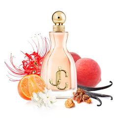I Want Choo mang đậm làn hương hoa cỏ phương Đông (Oriental Floral), một chút ngọt ngào xen lẫn một chút gợi cảm, rất sôi nổi nhưng cũng rất lắng đọng. I Want Choo mở đầu bằng những nốt hương Cam Đào tươi vui rực rỡ, sau đó nốt hương trung tâm – Red Spider Lilies (Hoa Loa Kèn Nhện Đỏ) và Hoa Nhài Sambac trỗi dậy nồng nàn gợi cảm và kết lại bằng hương Vani ngọt ngào lắng đọng.