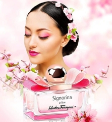 Dòng Signorina của Salvatore Ferregamo gây ấn tượng với mọi người bằng một chiếc chai đựng đầy nữ tính, với mùi thơm ngọt ngào của Trái cây và Hoa. Signorina In Fiore là một phiên bản tiếp nối nằm trong dòng Signorina của hãng, một cô gái bên những bông hoa.