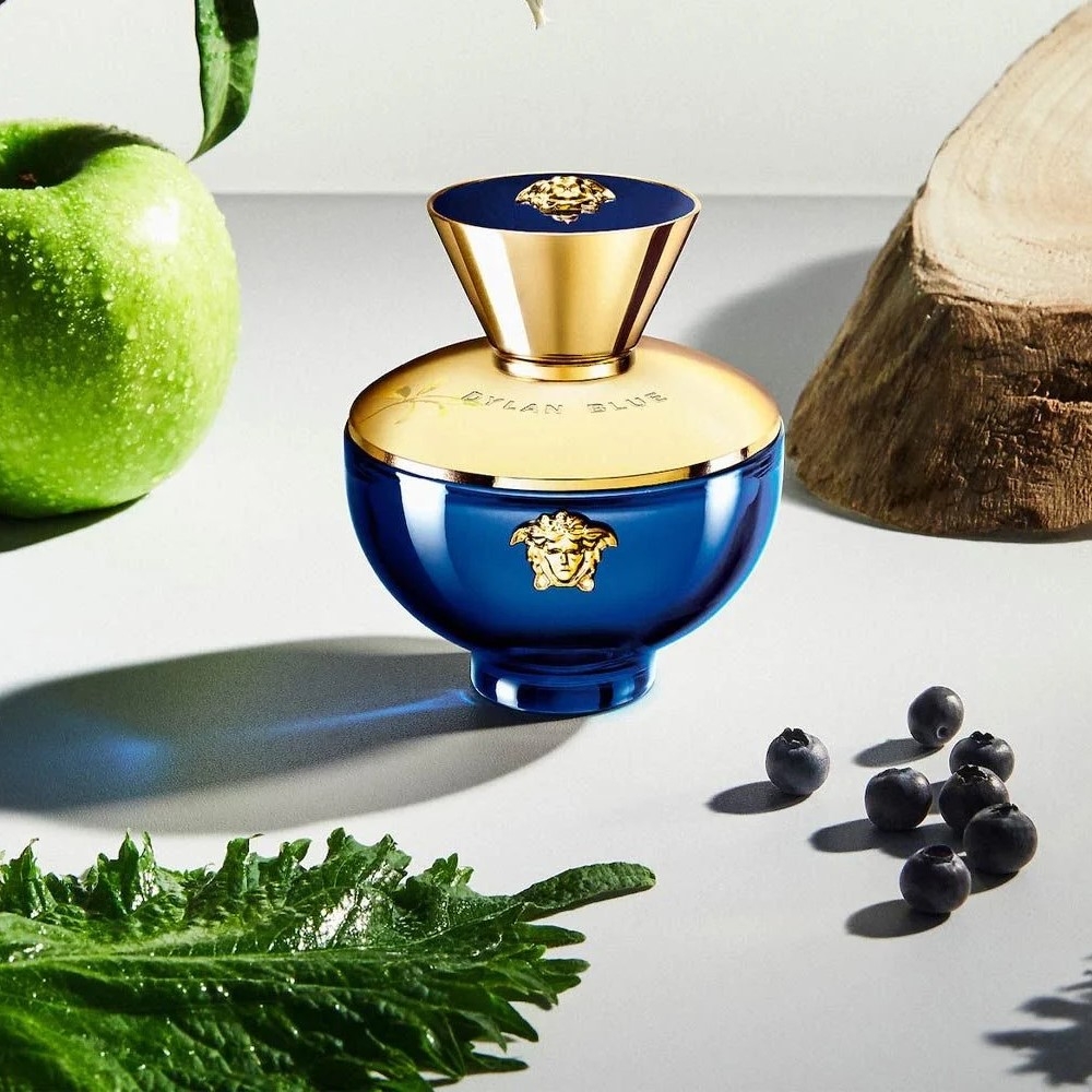 Mở ra với hương tươi mới từ trái cây hoà quyện cùng Cỏ ba lá, Cây tía tô tạo nên mùi hương độc đáo và tràn sức sống. Hoa hồng, Hoa nhài quyến rũ và nữ tính cùng với hương Quả đào ngọt ngào xuất hiện tại tầng hương giữa này là một sự kết hợp vô cùng uyển chuyển. Khép lại tại tầng hương cuối là Gỗ trắng cùng Xạ hương quyến rũ, gợi cảm. Tất cả tạo nên một quý cô Versace Dylan Blue Pour Femme Eau de Parfum thật đẹp đẽ.