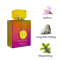 Nét đẹp bí ẩn của Club de Nuit Untold Armaf bắt đầu bằng hương thơm hoa nhài nhã nhặn và tinh tế. Hoa nhài thơm thoang thoảng với bản sắc đặc trưng xen lẫn cùng nghệ tây mang hương thơm ngọt bùi, mềm mại và quyến rũ.