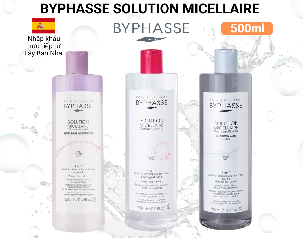 Nước Tẩy Trang Byphasse Cho Mọi Loại Da đến từ thương hiệu mỹ phẩm BYPHASSE xuất xứ Tây Ban Nha được xem là bản dupe của tẩy trang Bioderma đình đám, sử dụng công nghệ Micellar giúp loại bỏ hiệu quả lớp trang điểm cùng bụi bẩn, bã nhờn sâu trong lỗ chân lông, mang lại làn da sạch thoáng mà không gây nhờn dính.
