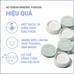 Duy trì da khô thoáng: Phấn phủ No Sebum Mineral Powder hút sạch lớp dầu thừa, duy trì làn da khô thoáng và rạng rỡ.