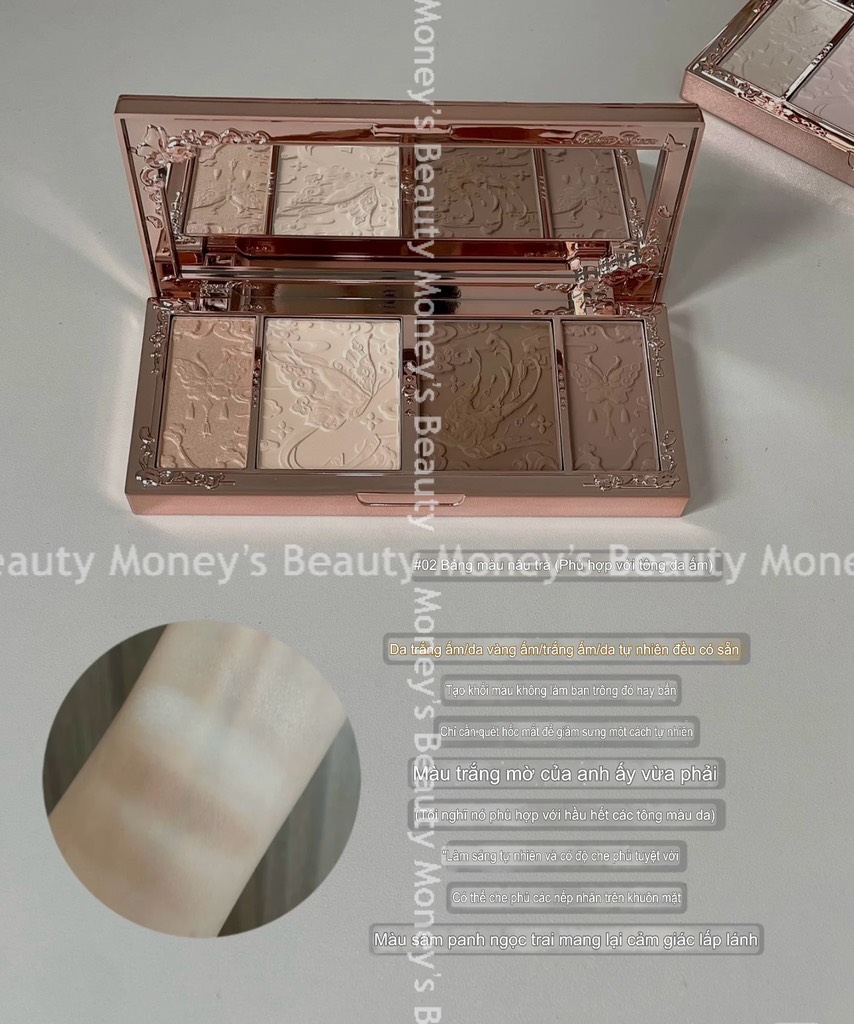 - Bảng phấn tạo khối Butterfly Cloud Collar Flower Knows gồm các màu sắc được lựa chọn kỹ lưỡng, phù hợp với nhiều tông da khác nhau.