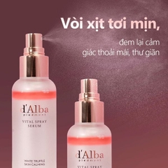 3. Serum dạng xịt Vital Spray Serum bao gồm: chiết xuất Lithospermi radix, 3 loại dầu hoa đỏ (dầu hoa tầm xuân, dầu hoa hồng đỏ, dầu hoa phong lữ), chiết xuất hoa anh đào, Aquaxyl, Beautiful herb story, Lora-Anti-S - cung cấp các dưỡng chất hữu cơ cho da, góp phần làm dịu, phục hồi và tăng cường kết cấu da.