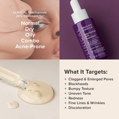 Tinh chất cải thiện Clinical Niacinamide 20% Treatment sở hữu nồng độ tập trung 20% Niacinamide cùng bảng thành phần an toàn, lành tính phù hợp sử dụng cho mọi loại da, đặc biệt là da gặp vấn đề về lỗ chân lông. Nồng độ Niacinamide trong công thức vượt trội của sản phẩm sẽ giúp tinh chỉnh kích thước lỗ chân lông, dưỡng da mềm mịn, khắc phục tình trạng da sần vỏ cam, thô ráp, xỉn màu đồng thời kích thích sản sinh collagen, đẩy lùi các dấu hiệu lão hóa.