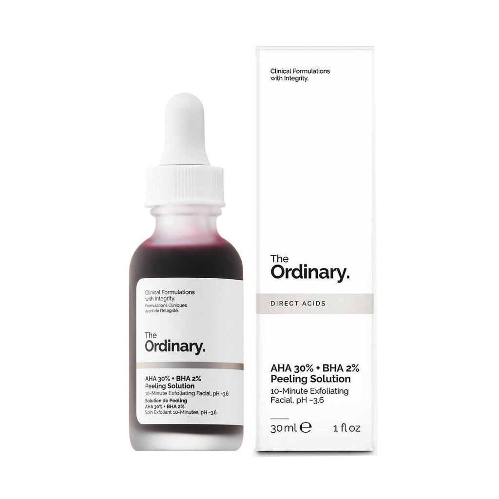 Serum tẩy tế bào chết, cải thiện mụn The Ordinary AHA 30% BHA 2% Peeling Solution là sản phẩm có nguồn gốc xuất xứ từ thương hiệu mỹ phẩm The Ordinary của Canada với các thành phần an toàn lành tính giúp tẩy tế bào chết một cách chuyên sâu với nồng độ khá thấp, giúp ngăn tình trạng mụn hiệu quả, cùng việc tẩy da chết sẽ giúp da sáng mịn hơn.