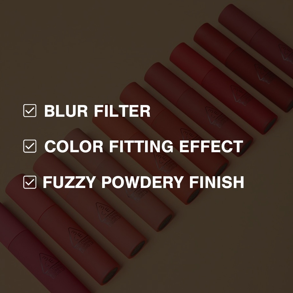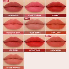 - FUZZY POWDERY FINISH – công thức tạo nên lớp finish matte mịn mờ mà các nàng vẫn vô cùng thích vì độ trendy không bao giờ lỗi mode. Bên cạnh đó, hiệu ứng này cũng giúp bảo vệ màu son được cố định trên môi lâu hơn, giữ màu đến 6 tiếng và khi trôi sẽ trôi đều chứ không bị loang lổ, giúp nàng vẫn luôn xinh đẹp ngay cả khi tàn tiệc.