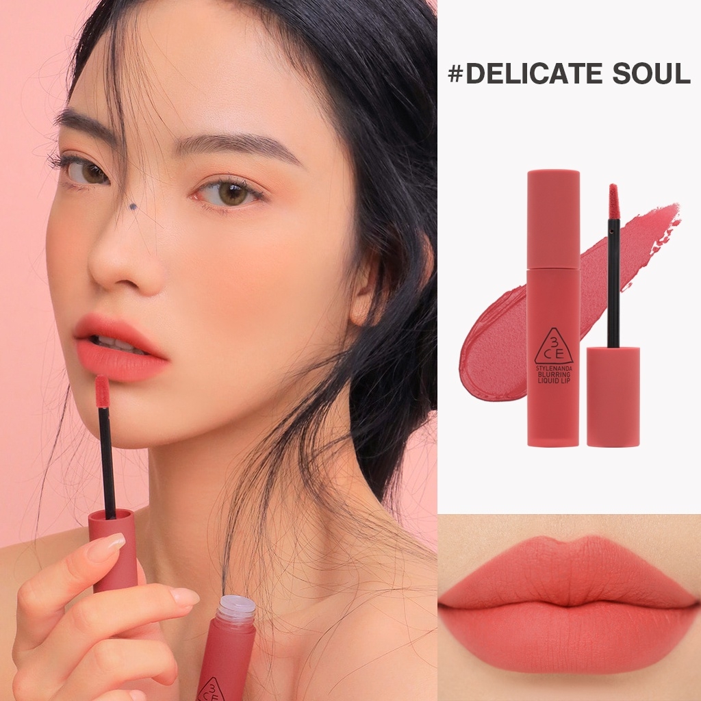 - COLOR FITTING EFFECT – đánh tan định kiến son Hàn Quốc thường lệch màu trầm trọng so với bảng swatch, Blurring Liquid Lip cam kết mang đến màu son chính xác với độ lên màu tốt, bám màu lâu và không bị phụ thuộc vào sắc tố môi của người dùng. Chất son đặc giúp bao phủ toàn bộ môi, rất thích hợp cho những cô nàng không tự tin với màu môi mộc có phần nhợt nhạt, thâm sạm…của mình