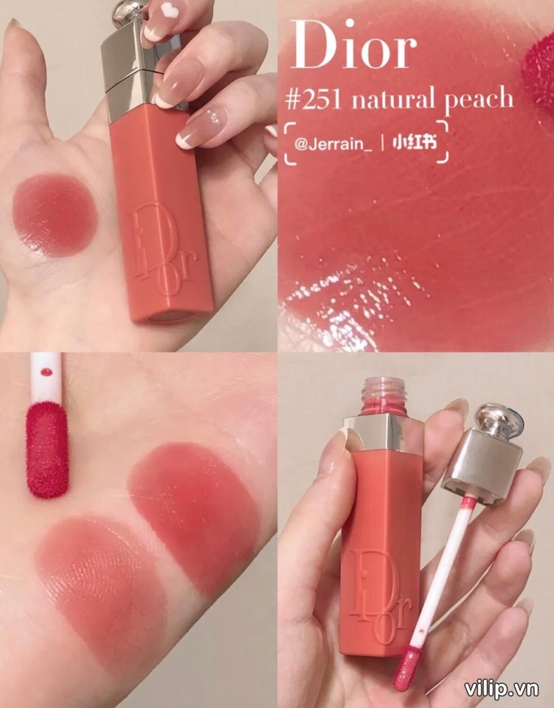 – Dior Addict Lip Tint chứa tới 95% thành phần nguồn gốc tự nhiên, chứa dầu anh đào khiến môi ẩm mịn suốt 24 giờ liền, cảm giác khi dùng.