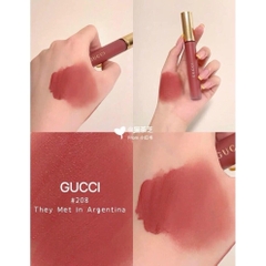 Chất son Gucci kết cấu dạng kem mềm mịn như bột thoa lên môi chuyển hoá thành lớp finish mờ lì, xốp mềm, siêu nhẹ tênh đã thế còn cực kì mềm môi, lên chuẩn màu. Độ bên đỉnh cao, dễ tán không sợ bị lộ vân môi.