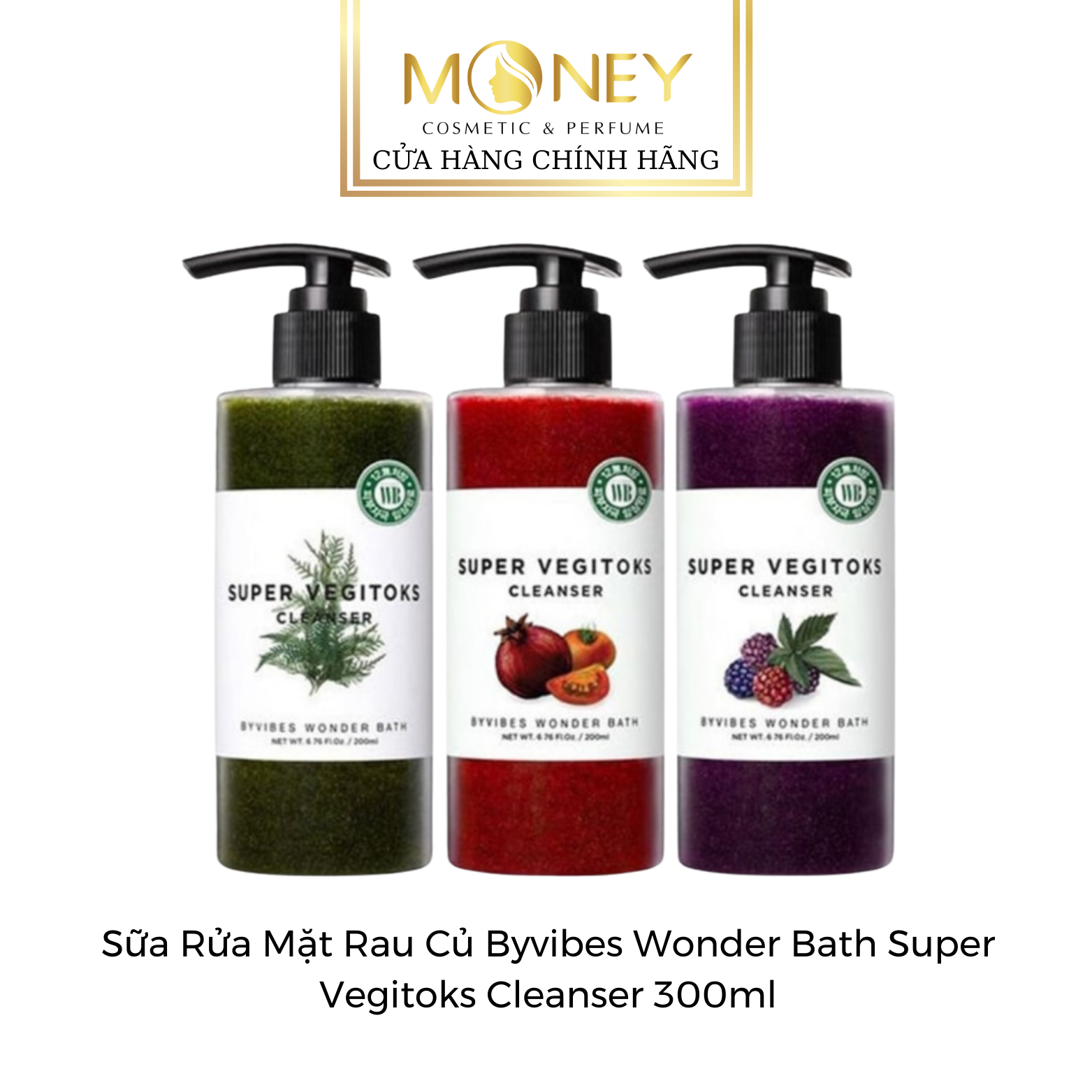 Sữa Rửa Mặt Rau Củ BYVIBES WONDER BATH Super Vegitoks Cleanser kết hợp cả 3 chức năng chỉ trong 1 sản phẩm duy nhất: tẩy trang – làm sạch – thải độc cho da. Điều đặc biệt nữa là dòng sản phẩm này được chiết xuất từ 100% các loại rau củ quả thiên nhiên, an toàn và lành tính cho cả những làn da nhạy cảm nuôi dưỡng cho da luôn khỏe mạnh và tươi trẻ, tràn đầy sức sống.