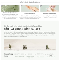- Dầu hạt xương rồng Sahara: có tác dụng làm mềm da, dưỡng ẩm tối ưu cũng như kiểm soát lượng dầu thừa trên da.