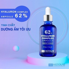 Histolab 62% Hyaluron Complex Ampoule Derma Science – tinh chất chứa 62% phức hợp Acid Hyaluron (HA) cùng tinh chất ốc sên, các thành phần dưỡng ẩm hoạt hóa thiết yếu cho da,… giúp cấp ẩm ẩm sâu, tăng cường độ mềm mại và đàn hồi cho da, thúc đẩy tái tạo tế bào mới, làm dịu mát tức thì, giảm kích ứng (mẩn đỏ, sưng viêm, ngứa ngáy,…), làm chậm quá trình lão hóa, kháng viêm, tăng cường miễn dịch và khả năng hấp thụ dưỡng chất, củng cố hàng rào bảo vệ da, kích thích tuần hoàn máu, phục hồi thương tổn, dưỡng da căng bóng và trẻ hóa, hạn chế tình trạng da thiếu nước dẫn đến khô sần, xỉn màu,…